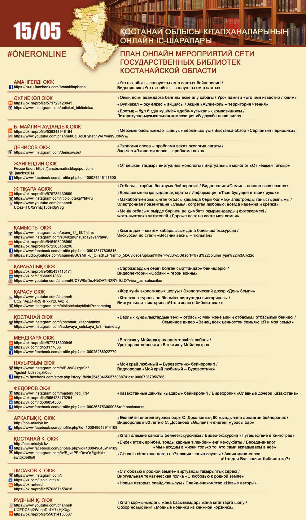 Қостанай облысы кітапханаларының онлайн іс-шаралары 15/05