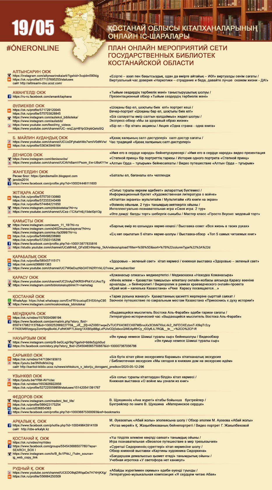 Қостанай облысы кітапханаларының онлайн іс-шаралары 19/05