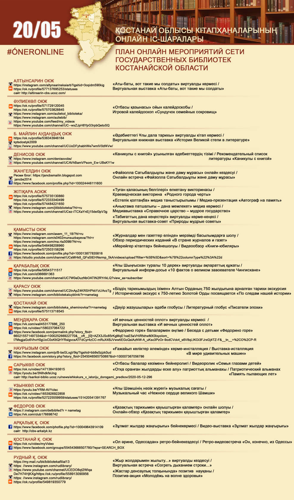 Қостанай облысы кітапханаларының онлайн іс-шаралары 20/05