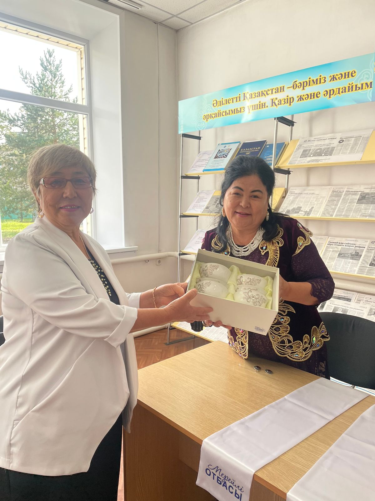 Отбасы мерекесіне орай қызмет көрсету бөлімінің басшысы Ибраева Р.мен кітапханашы Абдрашева З. барша облыс, аудан көлеміне танымал, өнерлі де өнегелі отбасы Тобыл-Нұржамал Болатовтар әулетімен «Бәрі де қара шаңырақтан бастау алады» атты мерекелік іс-шарасын ұйымдастырды.
