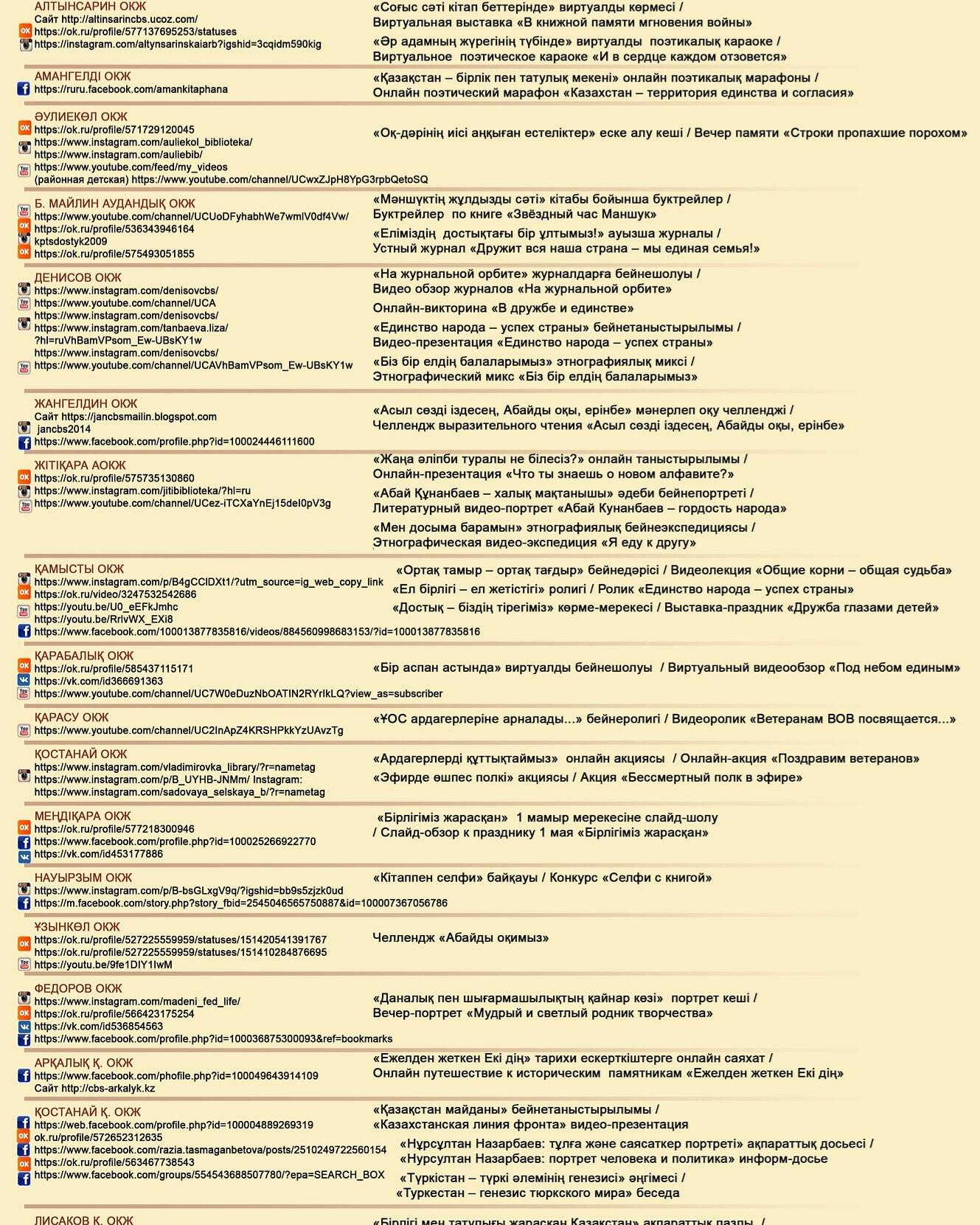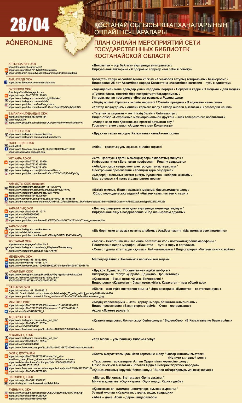 Қостанай облысы кітапханаларының онлайн іс-шаралары 28/04