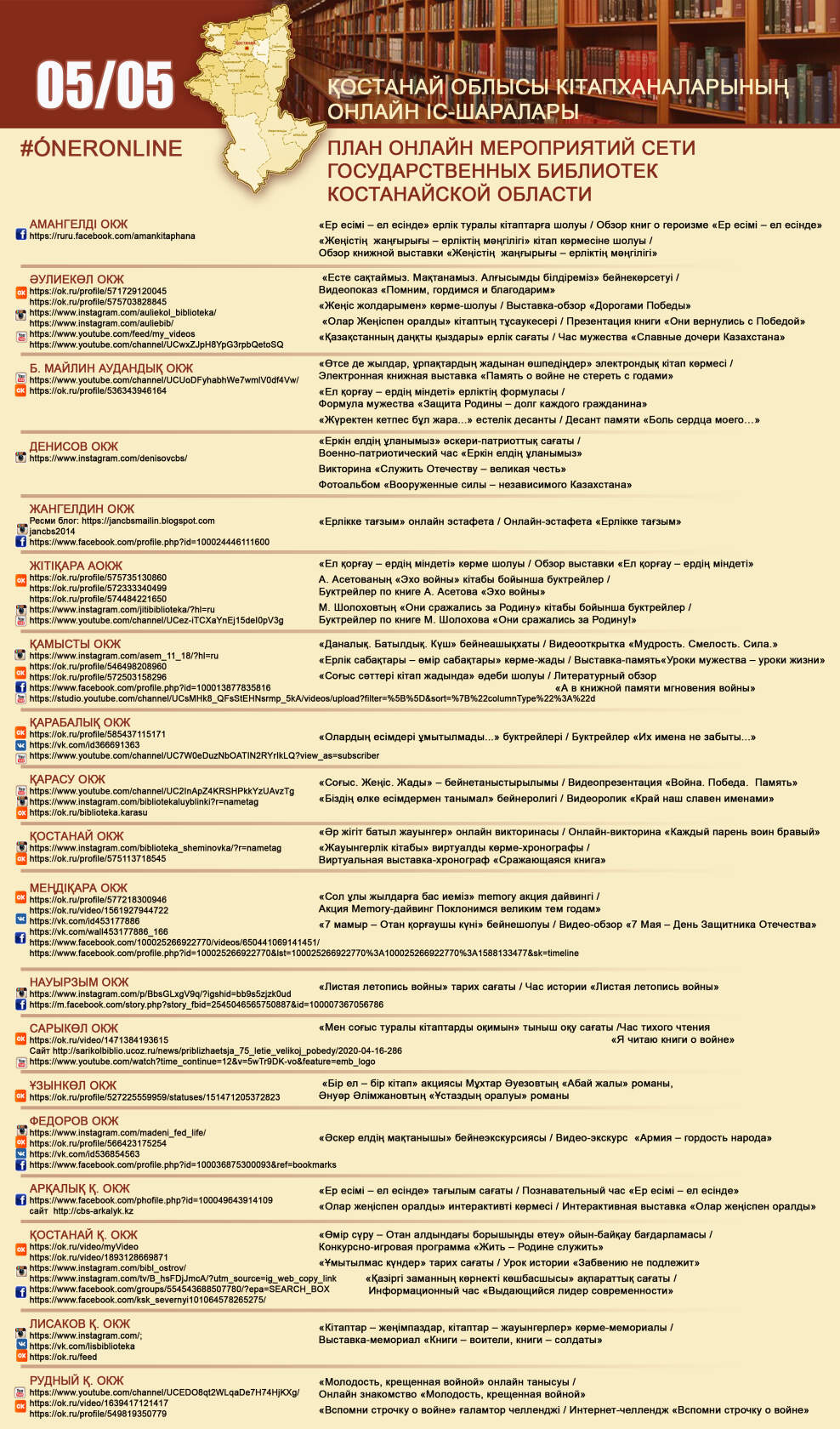 Қостанай облысы кітапханаларының онлайн іс-шаралары 05/05