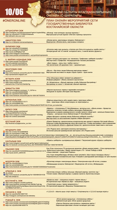 Қостанай облысы кітапханаларының онлайн іс-шаралары 10/06
