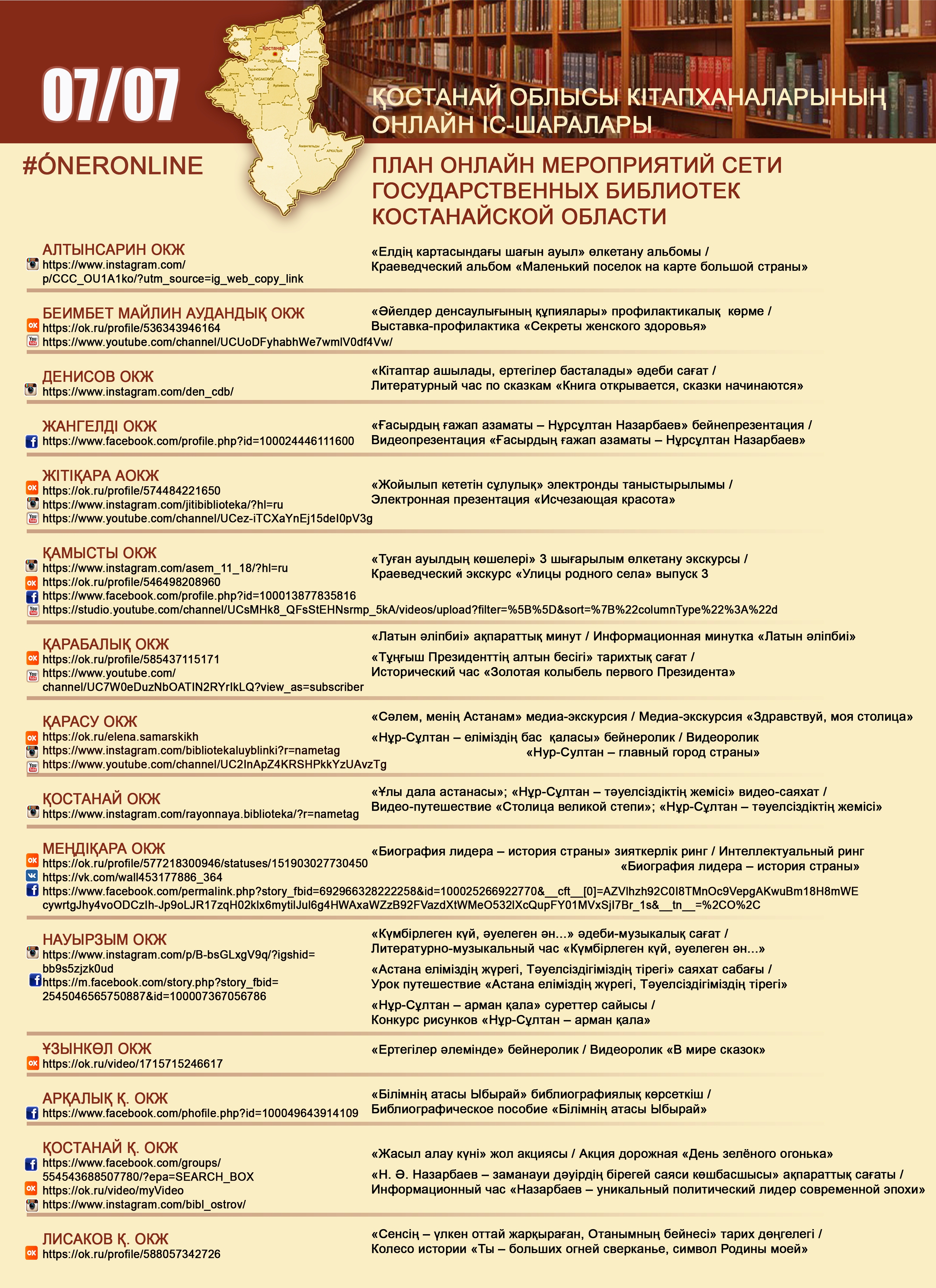 Қостанай облысы кітапханаларының онлайн іс-шаралары 07/07