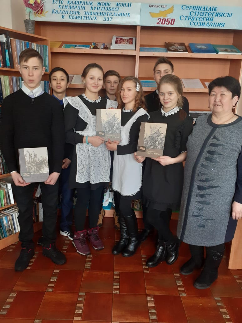 В Сосновской сельской библиотеке библиотекарем Канжигалиевой Г.А. с учащимися 8 класса было проведено путешествие в историю «Золотая Орда: история и историческая память».