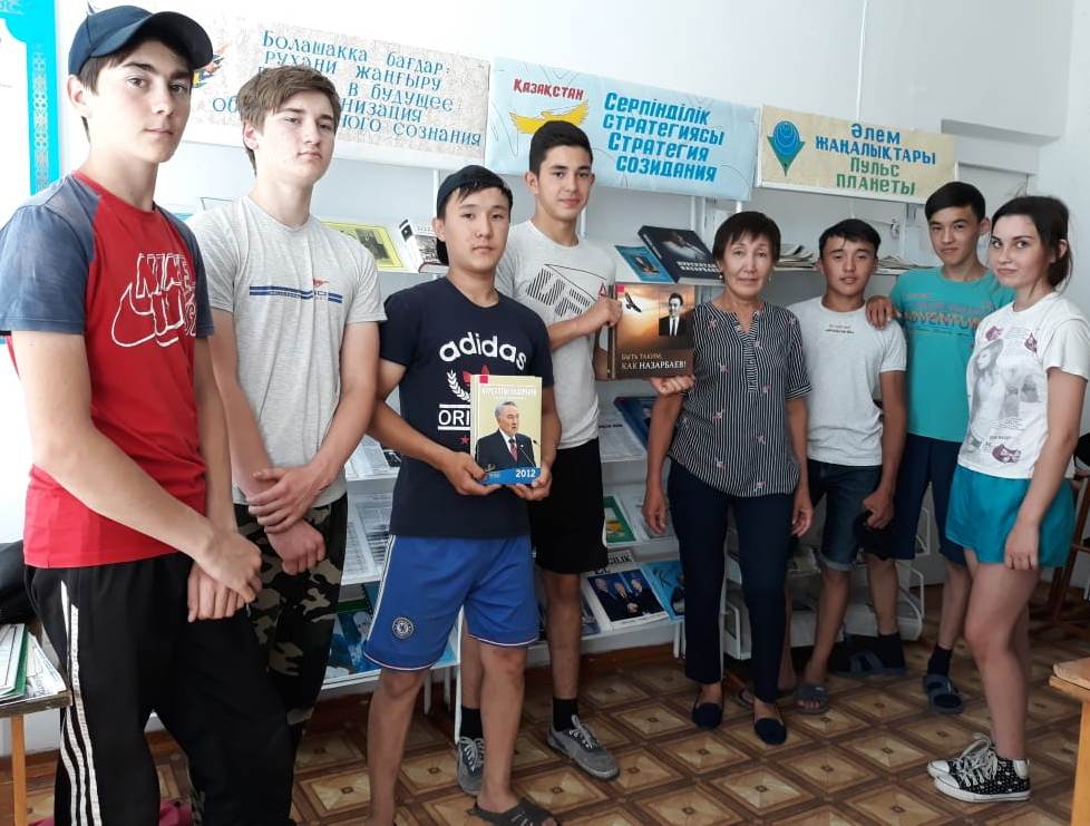 К 80 – летию Первого Президента Республики Казахстан Н. Назарбаева в Ломоносовской сельской библиотеке, библиотекарь Тулебаева Н. Б. 1 июля оформила книжную выставку «Ел сенімі – Президент. Опора страны - Президент». Библиотекарь провела обзор книжной выставки, рассказала ребятам о детстве и школьных годах Первого Президента, приводились интересные факты из его биографии. Затем библиотекарь с ребятами провела блиц – турнир «Неординарная личность эпохи». Ребята активно участвовали в мероприятии. Присутствовало 7 человек.