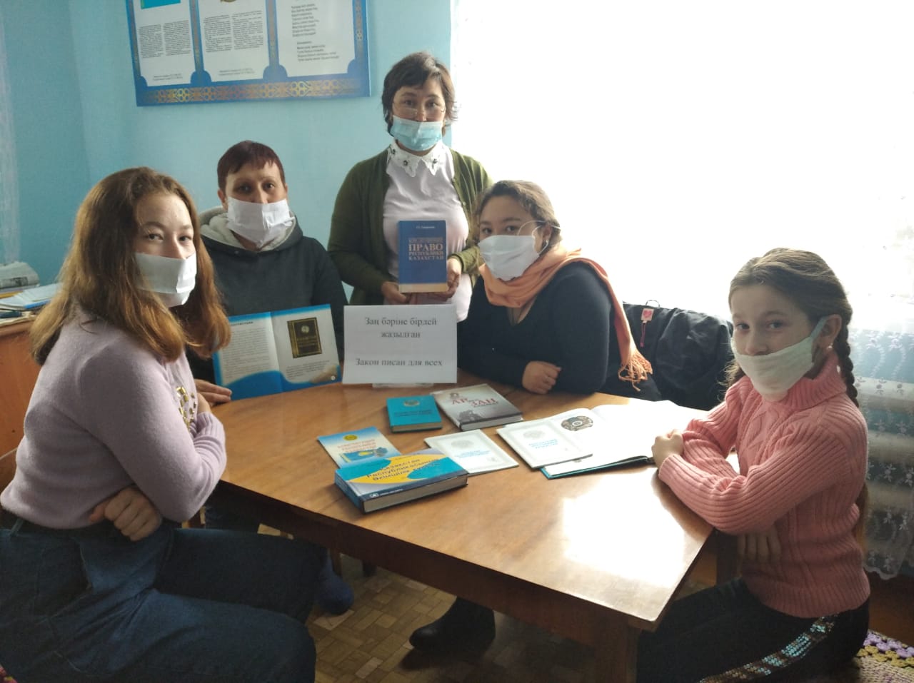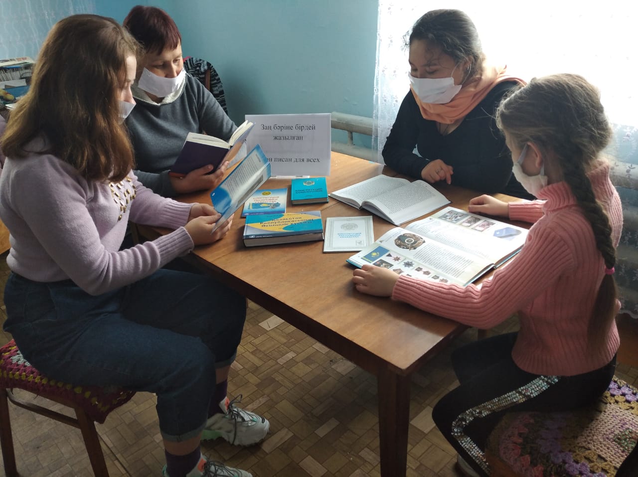 24 августа в Краснопресненской сельской библиотеке библиотекарь Садвакасова Д. А. провела с читателями познавательный час «Заң бәріне бірдей жазылған. Закон писан для всех».