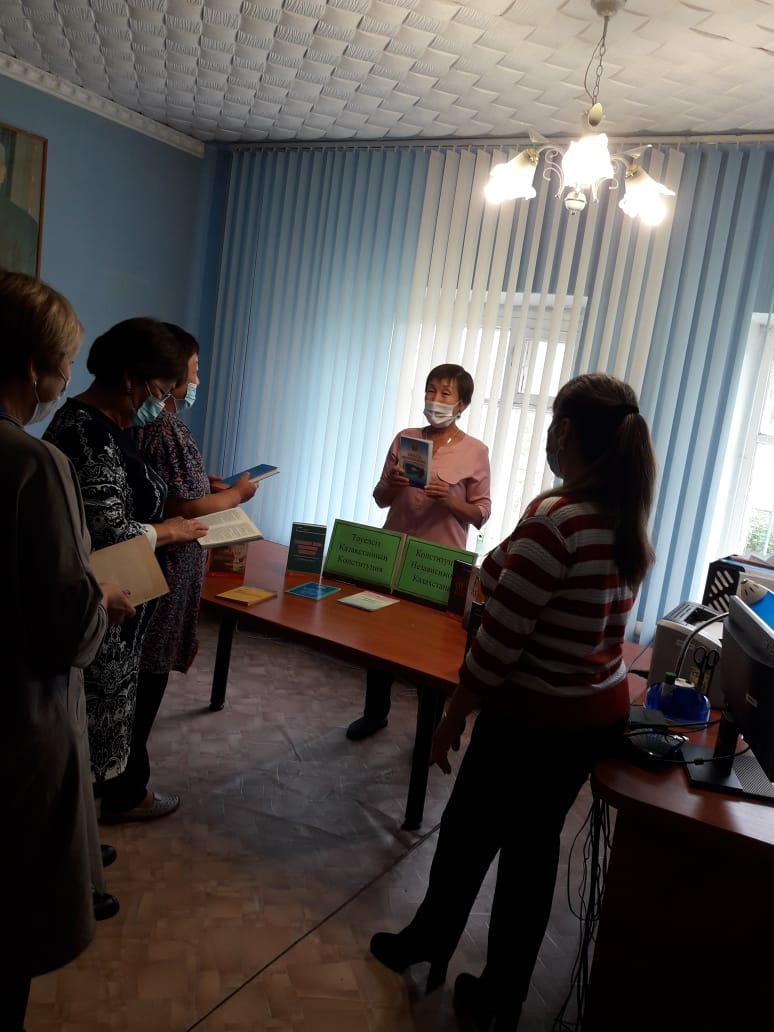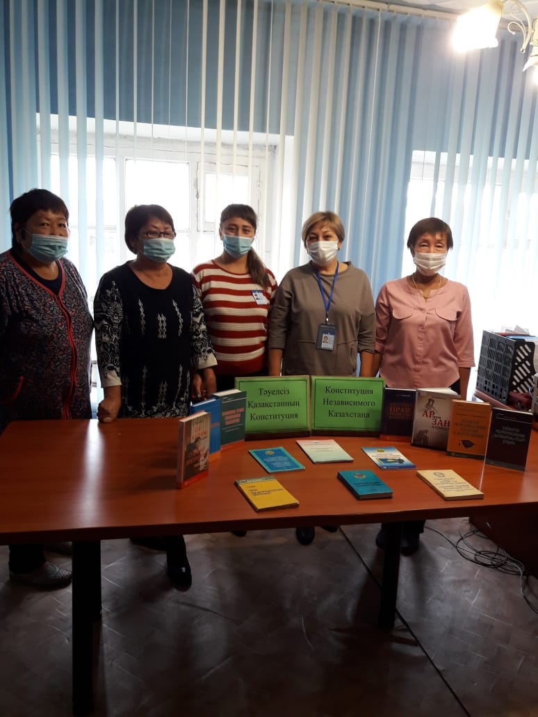 Библиотекарь Ломоносовской сельской библиотеки Тулебаева Н. Б. и аким округа Бугушева Марина Ивановна, 25 августа с сотрудниками аппарата акима, провели беседу «Конституция в нашей жизни», в акимате Ломоносовского сельского округа. Библиотекарь рассказала о главном законе страны – Конституции, о правах граждан нашего государства. Затем аким округа рассказала об обстановке соблюдения закона, прав и обязанностей в нашем округе. Далее присутствующие высказали свое мнение об отношении к Конституции Республики Казахстан. К мероприятию была оформлена тематическая полка «Тәуелсіз Қазақстанның Конституциясы. Конституция Независимого Казахстана». Библиотекарь вкратце ознакомила присутствующих с представленной литературой. Присутствовало 9 человек.
