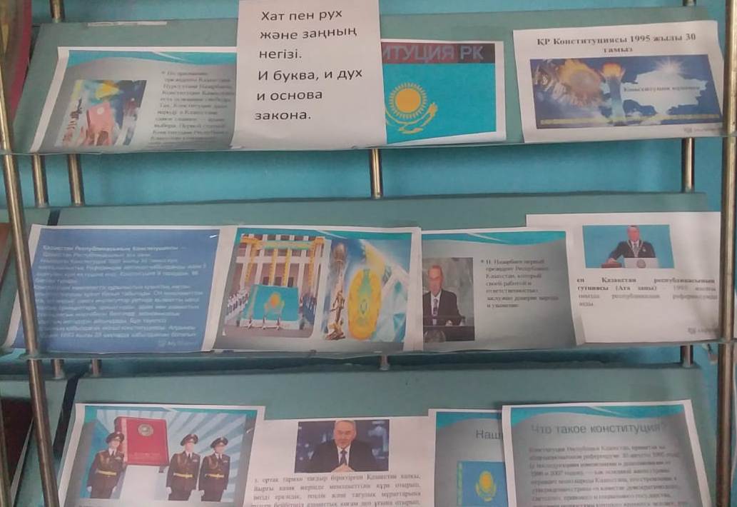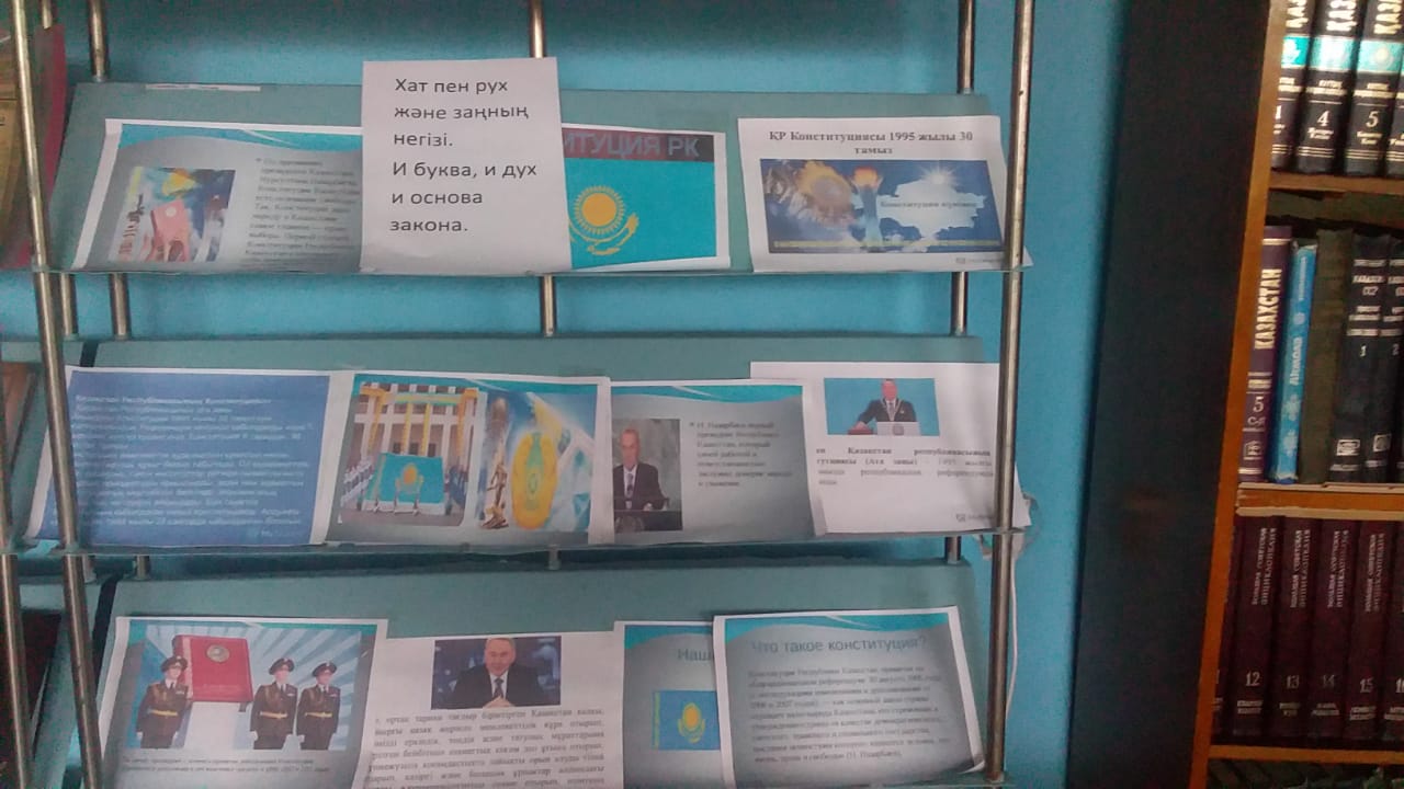 20 августа в Михайловской сельской библиотеке библиотекарь Шанатова А.А. оформила тематическую полку «И буква, и дух, и основа закона». Для внимания представлены материалы о Конституции РК.