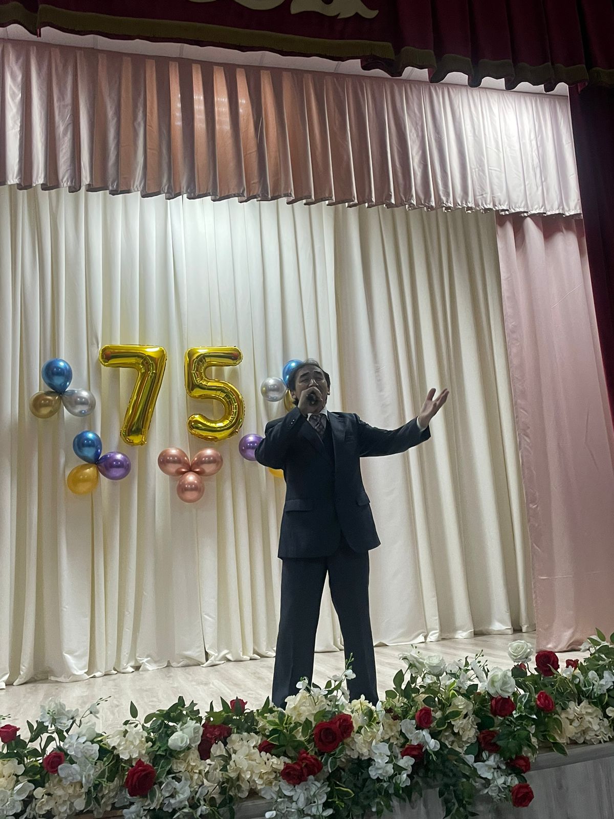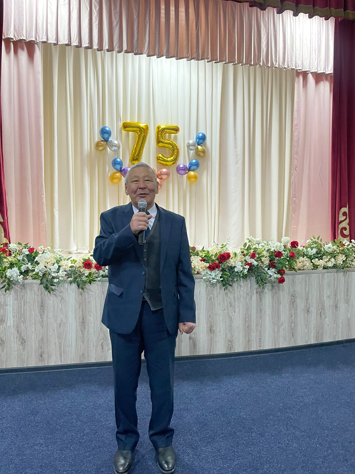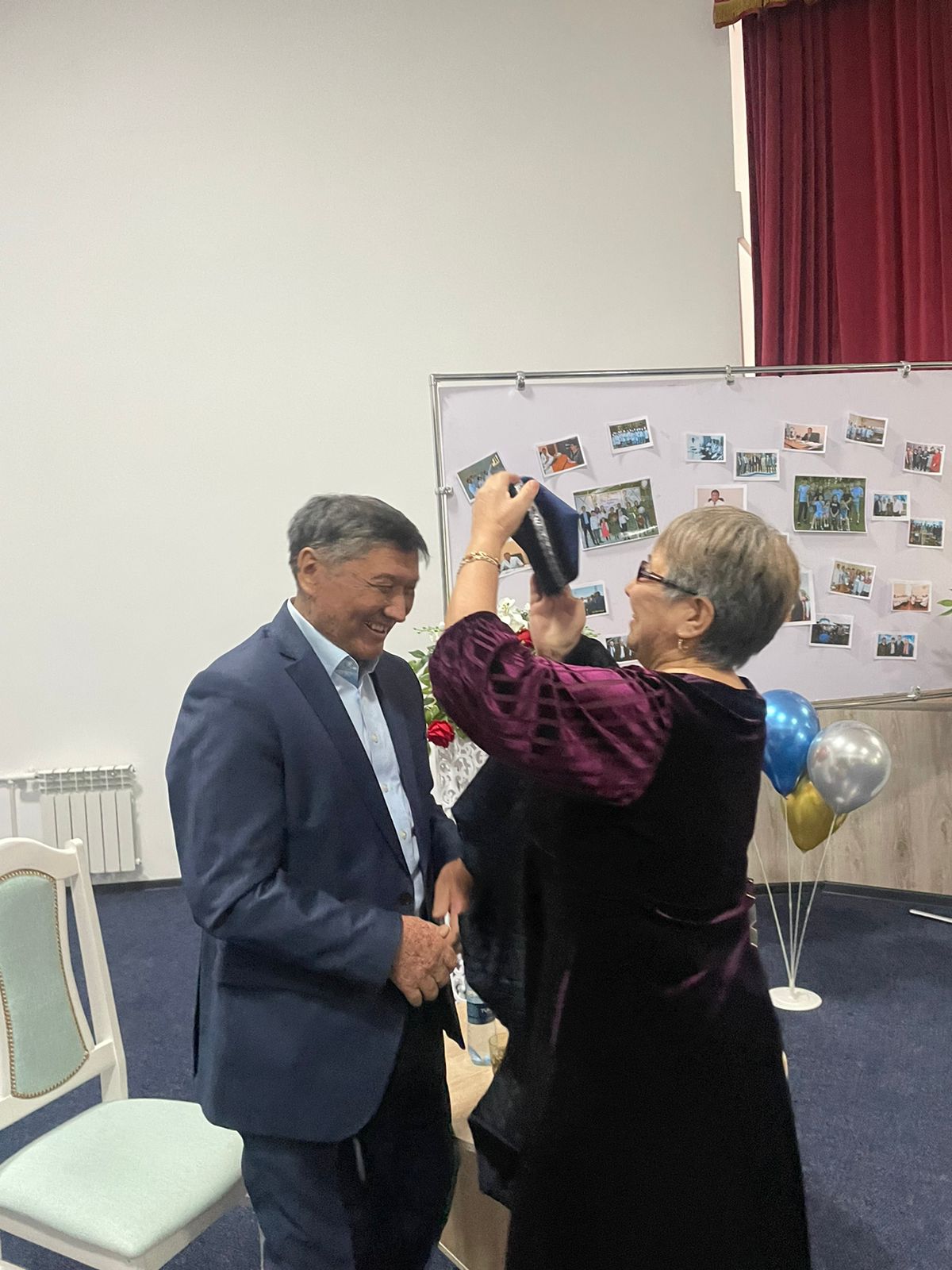 Пообщавшись с этим жизнерадостным, улыбчивым человеком, понимаешь - он, безусловно, умеет сделать так, чтобы каждый остался доволен. Он искренне дорожит выбранной когда-то профессией и не безразличен к здоровою своих пациентов. Ведущие отметили, что не только врачи –коллеги но другие сотрудники больницы обращались к Кайырбеку Бляловичу за решением бытовых проблем. Он всегда мог помочь. Добрые и тёплые слова звучали Кайырбеку Бляловичу из уст родных, коллег, многочисленных друзей. Присутствующие на мероприятии сотрудники и гости присоединились к теплым поздравлениям выступавших. В исполнении специалистов РДК «Юбилейный» прозвучали песни. На экране был показан видеоролик, где друг юбиляра Сауекенов Бакытжан Дауренович поздравил юбиляра и исполнил песню собственного сочинения «Қадірлі дос Қайырбек», а также были представлены фотографии юбиляра, продекламировали стихи юбиляру студенты профессионального – технического колледжа им. К. Доненбаевой Арцыбасова Виолетта, Волковская Виктория. С высокой оценкой работы санатория и с поздравительным словом на юбилее выступила директор Асаула Тамара Алексеевна – это юбилей каждого работника. Это праздник тех, кто посвятил свою жизнь благородному делу: заботе о жизни и здоровье человека – наших уважаемых медицинских работников. Но деятельность санатория не была бы возможна без кропотливой, ежедневной работы всех других, немедицинских подразделений. Смысл жизни этого гражданина, врача, отца и дедушки заключается в семье и работе. Замечательные дети и внуки, уважение окружающих - разве этого мало, чтобы быть по настоящему счастливым. В завершении мероприятия ведущие по казахской традиции на плечи юбиляра накрыли шапан, пожелав ему долгих лет жизни.(45 человек)