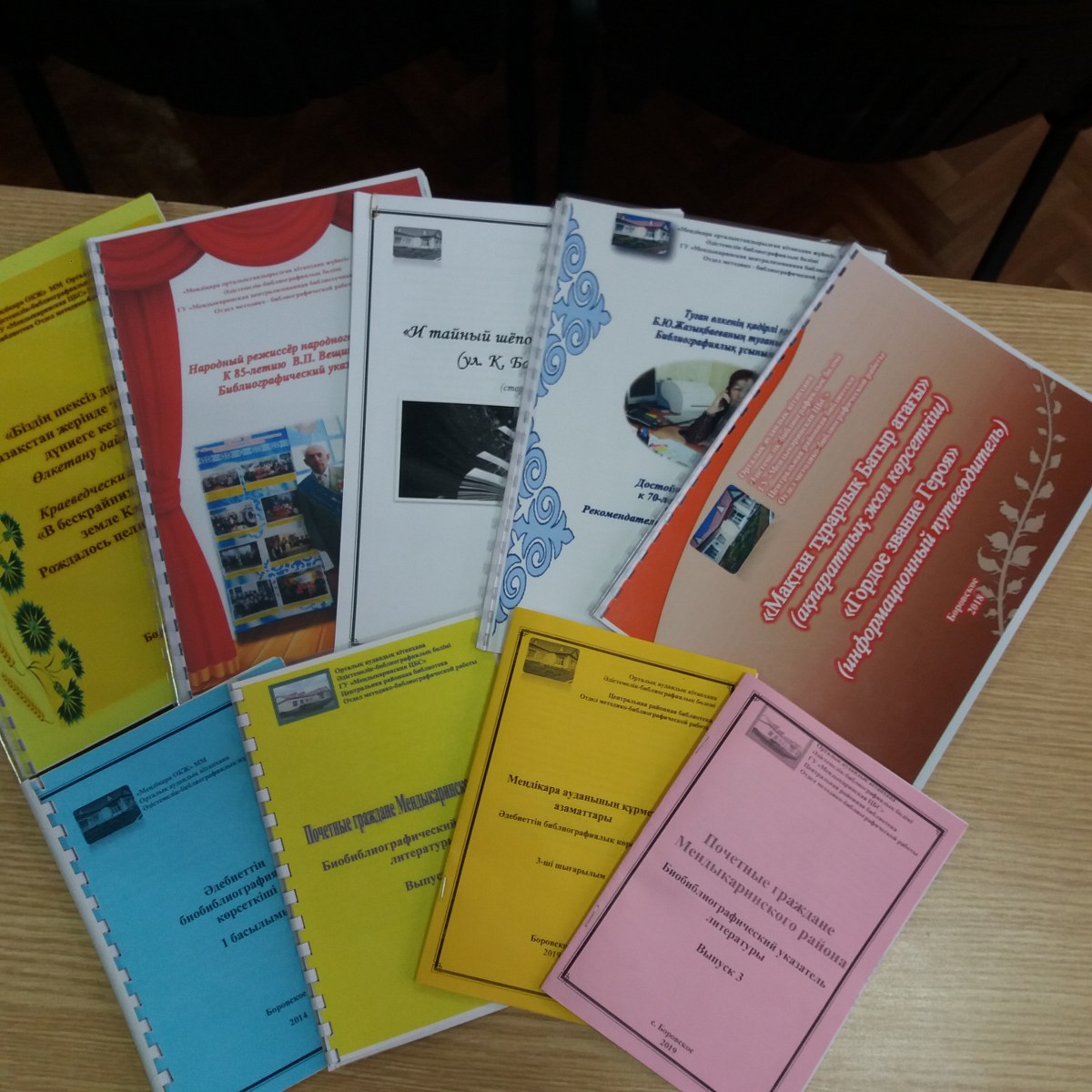 В 2019 году в Центральной районной модельной библиотеке завершена реализация двухгодичного издательского проекта «Өлкем менің – алтын бесігім». В 2019 году выпущен третий выпуск указателя «Почетные граждане Мендыкаринского района», который знакомит всех читателей библиотеки с такими именами, как М.Ж. Ахметов, К. Жакып, С.К. Козыбаев, П.Л. Лебедев и Н.А. Тимотин.