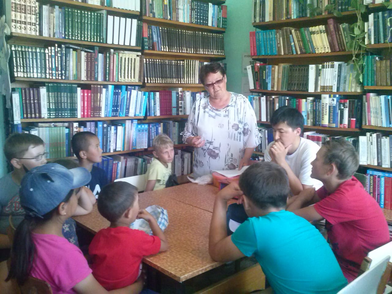 Библиотекарь Борковской сельской библиотеки Степаненко Г.И. с детьми, посещающими дворовую площадку "Непоседы", провела час интересного сообщения "История с четырьмя дырочками".