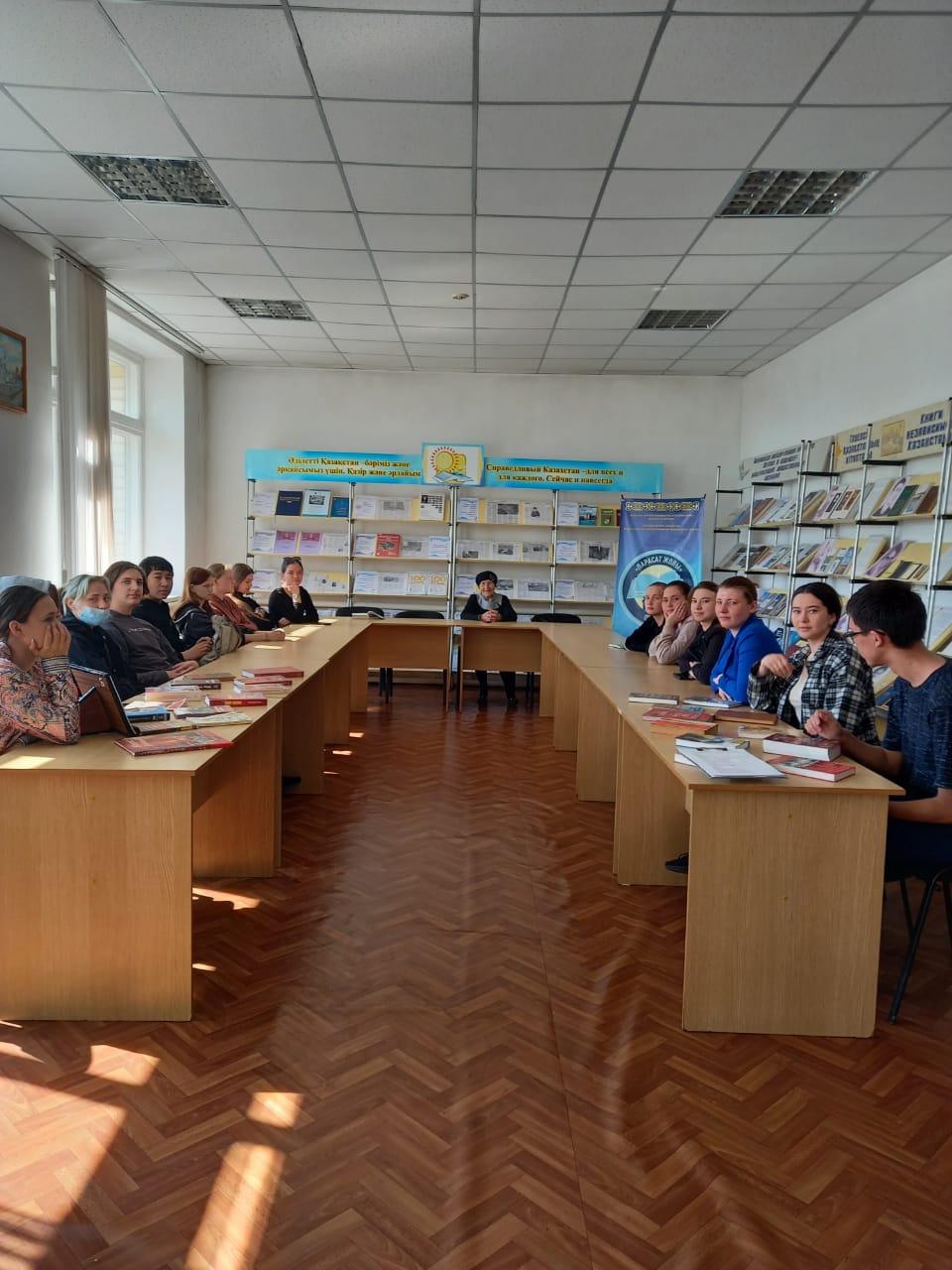В преддверии праздника Великой Победы в читальном зале центральной районной библиотеки библиотекарь абонемента Утетлеуова Р.С. провела вечер памяти ветеранов села «Вспомним всех поименно» со студентами профессионально-технического колледжа им. К. Доненбаевой. На встречу была приглашена ветеран труда Литвиненко Валентина Павловна, которая охотно рассказывала о своем детстве, пришедшемся на военные годы, о послевоенной юности. Студенты с большим интересом слушали рассказ ветерана труда и задавали вопросы. Вниманию присутствующих были представлены литература о Великой Отечественной войне, Книги памяти и краеведческий альбом о фронтовиках нашего района.