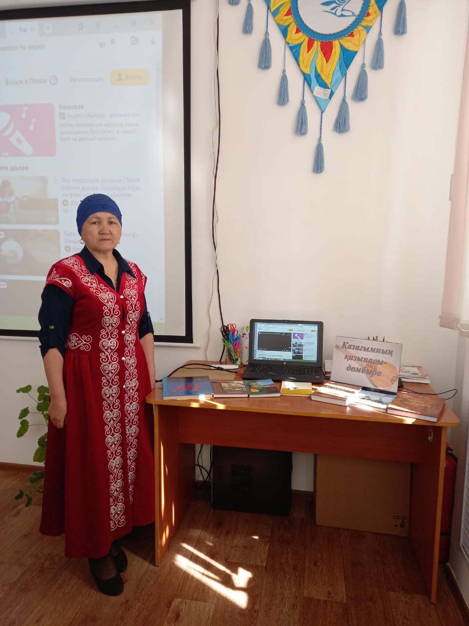 Древнейшая и объемная ветвь духовных ценностей казахского народа - инструмент домбры и его состояния. В честь Дня домбры библиотекарь Центральной районной библиотеки Абдрашева З. К. провела беседу для участников Дома творчества на тему «Қазағымның қазынасы – домбыра». В мероприятии принял участие преподаватель школы искусств Мустафин Хамит. Домбра - древнейшая летопись кочевой страны, душа повидавшего многое старика. Внешний вид домбры прост, его тон очаровывает своей естественностью, гармонией с человеческими возможностями. Библиотекарь рассказала ребятам о зарождении, происхождении и становлении домбрового искусства. Мустафин Хамит исполнил кюи Курмангазы Сагырбайулы «Сарыарқа» , Дины Нурпеисовой «Бұлбұл». Также на экране был показан мультфильм «Ақсақ құлан». Пение на домбре и куй продолжается в традициях нашего подлинного национального искусства, по следам, проложенным нашими исконными предками. А это, в свою очередь, является священным и почитаемым долгом как для будущих поколений. Поэтому мы должны смотреть на наши предстоящие дни с высоты таких благородных задач.